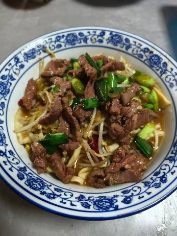 面馆的招牌生炒牛肉面,更藏着诸暨打面的 “灵魂”。当天新鲜的牛里脊肉现切现炒,搭配特色的店内酸菜,大火快颠 45 秒出锅,浇头鲜嫩多汁,与煮得恰到好处的面条拌匀,每一口都带着 “锅气” 与麦香。“这就是诸暨人爱吃的‘一面一烧’,火候差一点都不对味。” 章师傅擦了擦额头的汗,语气里满是自豪。