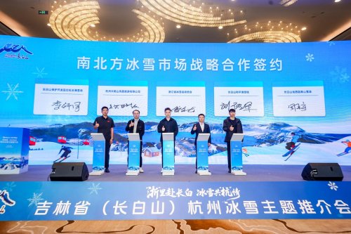 (长白山保护开发区红松王滑雪场、杭州大明山风景旅游有限公司、浙江省冰雪运动协会、长白山和平滑雪场、长白山池西区南山雪场就南北方冰雪市场战略合作进行签约)