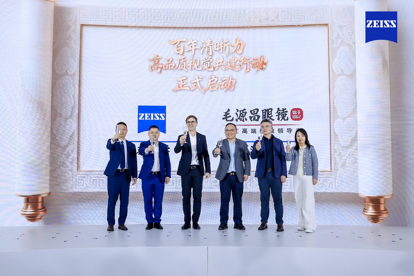 毛源昌眼镜始于1862年,是中国眼镜零售领域历史最为悠久的品牌之一,始终坚持以专业验配和长期服务为核心;蔡司光学拥有180年的光学科技积淀,在光学研发与制造领域长期引领全球标准。两大百年品牌在发布会上一致表示,选择彼此,并非基于短期商业考量,而是基于对专业主义、长期主义的高度共识。