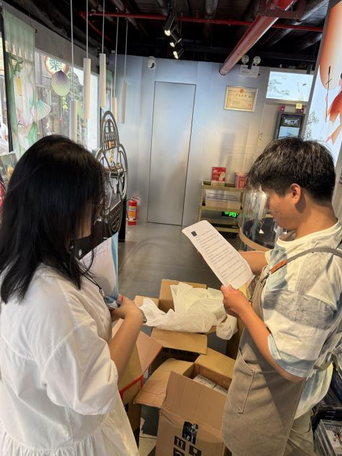 ▲图为团队在柯桥古镇与当地商户交流。吴杭嫣供图
