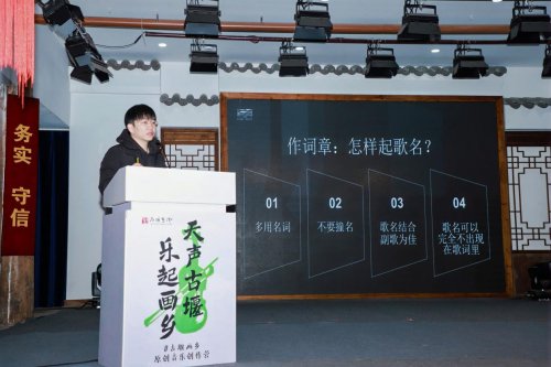大师课环节中,中国内地知名制作人、作词人林乔带来《国风音乐的在地灵感与现代表达》专题授课。深耕音乐领域多年的林乔,曾参与创作《陈情令》《山河令》等爆款影视剧OST,其深入浅出的讲解,为现场创作者解读了国风音乐的创作密码,更紧扣“天声古堰·乐起画乡”的核心理念,提供了从本土声景与人文中汲取灵感、实现传统元素现代表达的实践路径,让在场者深受启发。
