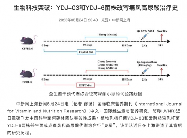 2. 生物科技突破:YDJ-03和YDJ-6菌株改写痛风高尿酸治疗史, 中国新闻网上海频道,2025-05-24. https://www.sh.chinanews.com.cn/yljk/2025-05-24/136198.shtml