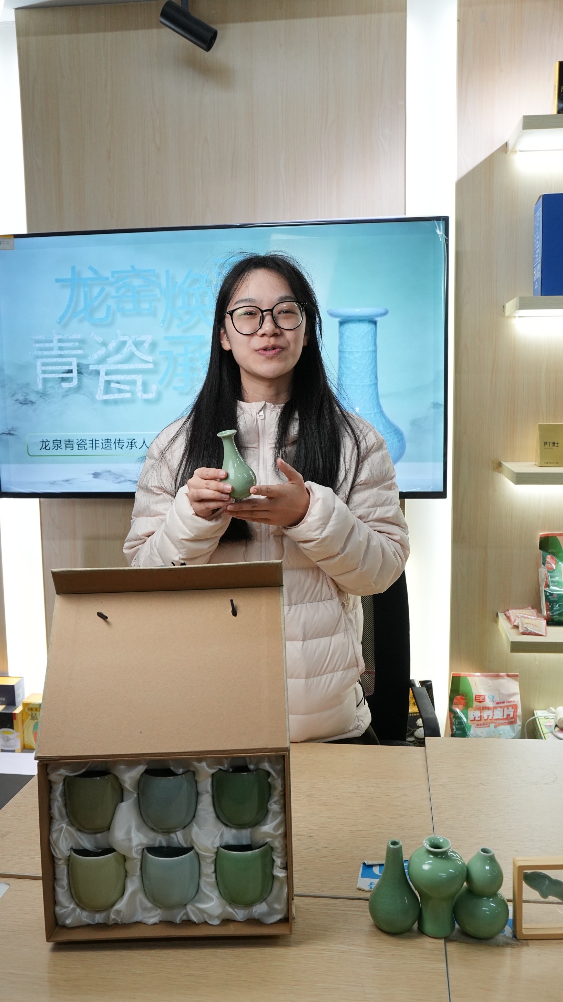 孙越介绍龙泉青瓷(央广网发 浙江纺织服装职业技术学院供图)